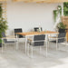 - Inkluderte komponenter: Du får et rillet treverk som lar regnvannet renne bort og unngår oppsamling. De sterke stålrammene sørger for stabile sitteplasser og måltider, og hvert element er laget for å være holdbart, praktisk, og pent.