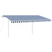 Automatisk uttrekkbar markise med stolper 4,5x3,5 m blå og hvit