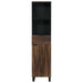 - Holdbare ramme materialer: Med en solid stålramme, tilbyr dette skapet pålitelig støtte og lang levetid. Jernpostbenene sikrer stabilitet og gjør at skapet kan smelte inn i ulik baderomsinnredning med sin moderne svarte finish.