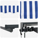Denne moderne uttrekkbare markisen gir en tilpassbar skyggeløsning for utendørsområder, og tilbyr både funksjonell lettelse fra elementene og moderne stil for å forbedre ethvert husutsende. Designet med rene, minimalistiske linjer og et stripete mønster i blandede nyanser av blått og hvitt, fungerer markisen som den perfekte aksenten for terrasser, hager eller balkonger. Den betydelige størrelsen kaster en stor skygge, ideell for å være vert for gjester eller nyte et stille ettermiddag utendørs. Enten du underholder eller slapper av, tilpasser denne markisen seg sømløst til ulike behov.
