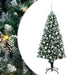 Det kunstige juletreet i PVC blander sjarmen fra tradisjonelle juledekorasjoner med bekvemmeligheten fra moderne LED-belysning. Med sin kjegleformede design, dekorert med furukongler og hvit snø, gir det en festlig følelse som passer perfekt for å skape en magisk juleatmosfære i stua, hagen eller på terrassen. Denne nydelige sesongdekorasjonen inviterer julestemningen inn i ethvert rom.