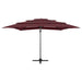 Parasoll med aluminiumsstang 4 nivåer 250x250 cm vinrød