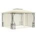 Festteltet er sterkt og holdbart takket være sin full stålramme. Det beskyttende taket og de avtakbare gardinene er begge laget av polyesterstoff med PA-belegg, som er UV-bestandig, og derfor passende for utendørs bruk! Nettene er et flott tillegg til dette lysthuset, siden de er klare, lette, ventilerende, har god lysgjennomtrengelighet om dagen og holder mygg ute om natten, noe som lar deg nyte en fredelig tid utendørs. Dessuten er dette vakre utendørs lyet raskt og enkelt å sette opp.