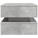 Salongbord med LED-lys betonggrå 90x50x40 cm