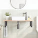 Den veggmonterte servanthyllen festes sikkert til veggen, og gir en elegant og plassbesparende løsning for badet.