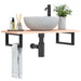 - Enkel å bruke: Benkeplaten leveres uten hull slik at kummen kan monteres til venstre, høyre eller i midten, avhengig av rommet og behovene dine. Takket være de forhåndsborede hullene i holderen kan den enkelt monteres med bordplaten og monteres på veggen.