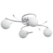 Denne unike taklampen, med elegante, dekorative akrylblader og 4 sfæriske glassskjermer, er et flott tillegg til enhver stue eller soverom.