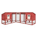 Utendørs kaninbur med løpegård rød og hvit heltre gran