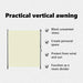 Denne gardinen av kvalitetsstoff med PA-belegg er falmebestandig og kan blokkere solen mens den lar luft strømme gjennom. Den kan enkelt rulles opp og ned med det hånddrevne systemet. Denne vertikale gardinen har to stående stolper med justerbar høyde fra 225 til 275 cm. Den kan passe til de fleste takhøyder og sikre enkel montering.