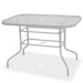 De komfortable stolene er laget av høykvalitets pulverlakkert stål. Takket være de sterke setene og ryggstøttene av textilene-stoffet, er våre stoler svært komfortable og værbestandige. Bordet har en sjenerøs størrelse, solid og lett å rengjøre temperert glass topp med en dekorativ vannbølge tekstur. Den medfølgende parasollen beskytter deg mot sola. Stolene kan stables for å spare plass når de ikke er i bruk. Monteringen er enkel.