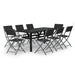 Utendørs spisestue 9 deler grå og svart